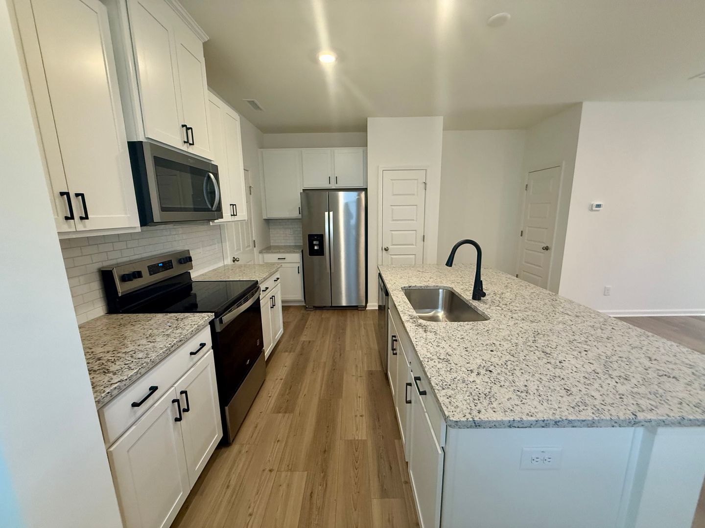 Welcome to your BRAND NEW three-bedroom, 2.5 bath townhome in the heart of Mebane, NC. This stunning property boasts a modern open concept layout, perfect for entertaining and everyday living. The kitchen is a chef's dream, complete with stainless steel appliances and sleek granite countertops. The main level features new luxury vinyl planking, while the upper level is carpeted for added comfort. The townhome also includes an attached garage, providing ample storage and parking space. Recessed lighting throughout the home creates a warm and inviting atmosphere. Conveniently located, this townhome is just a stone's throw away from a variety of shopping and dining options. Experience the best of Mebane living in this brand new construction.