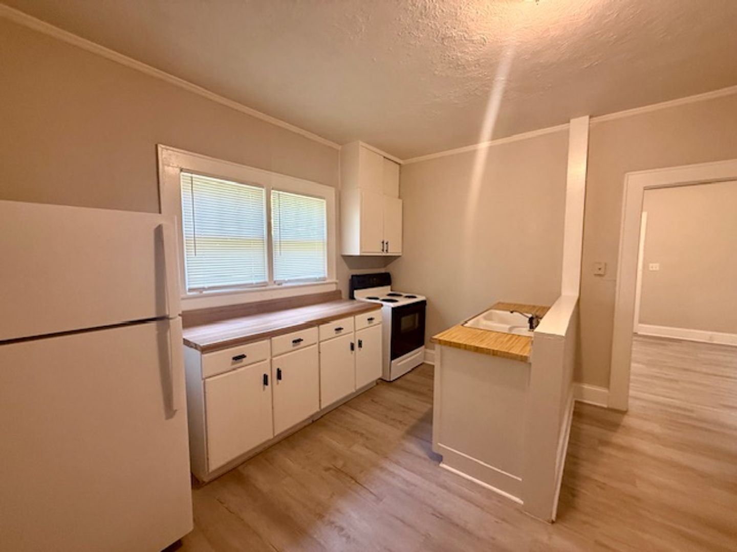 Conveniently located on South Church Street, this one bedroom, one bath duplex offers a clean and refreshed interior with easy, low-maintenance living. The home features brand new LVP flooring throughout, fresh interior paint, updated tub surround, and new mini blinds. All hard surface flooring means no carpet to maintain.